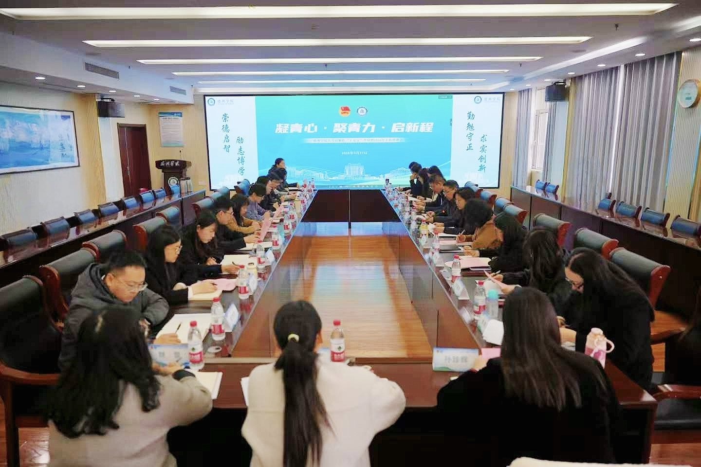会议深入贯彻落实全国两会精神,传达学习了校党委书记吴君同志在学校“开局‘十五五’工作动员部署会议”上的讲话精神,为新一年学校共青团工作凝聚力量。会议宣读了2025年度学校五四红旗团委、共青团工作先进单位和共青团工作贡献奖表彰名单,正式启动2026年学校共青团标志性工作“揭榜领题”项目。校团委负责人就2026年度学校共青团工作要点作了系统部署。会上,部分二级学院团委围绕思想引领、组织建设、社会实践、科技创新等主题作了特色工作典型交流发言。