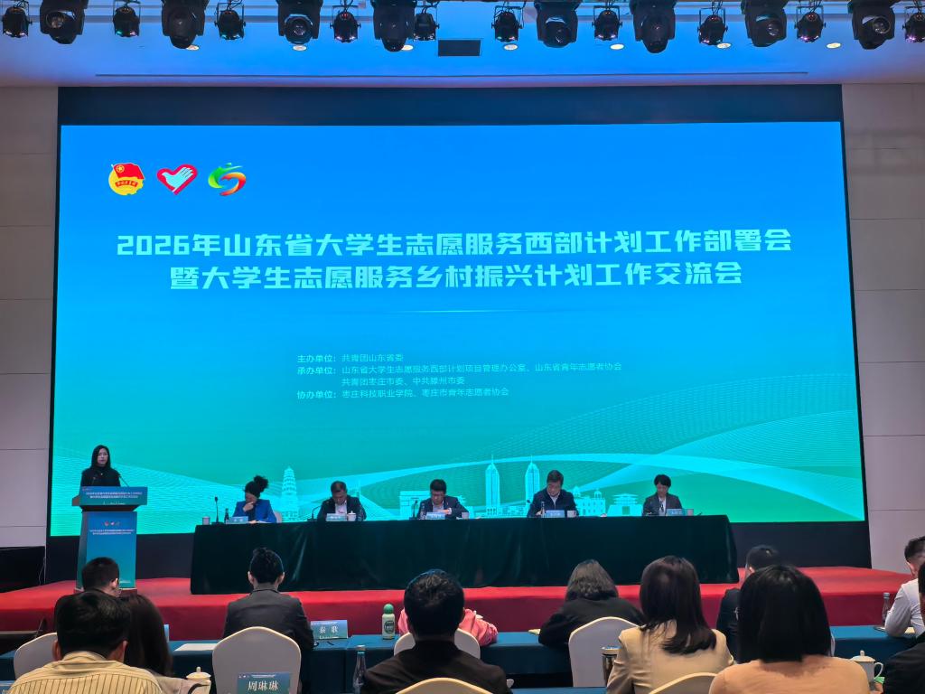为贯彻落实团中央关于大学生志愿服务西部计划有关工作要求,4月14日至15日,由共青团山东省委主办的2026年山东省大学生志愿服务西部计划工作部署会暨大学生志愿服务乡村振兴计划工作交流会在枣庄滕州召开,校团委负责人参会并作典型发言。